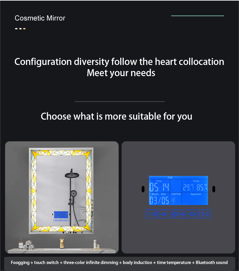 Enamel smart bathroom mirror with light touch toilet LED toilet toilet bathroom mirror foreign trade cross-border