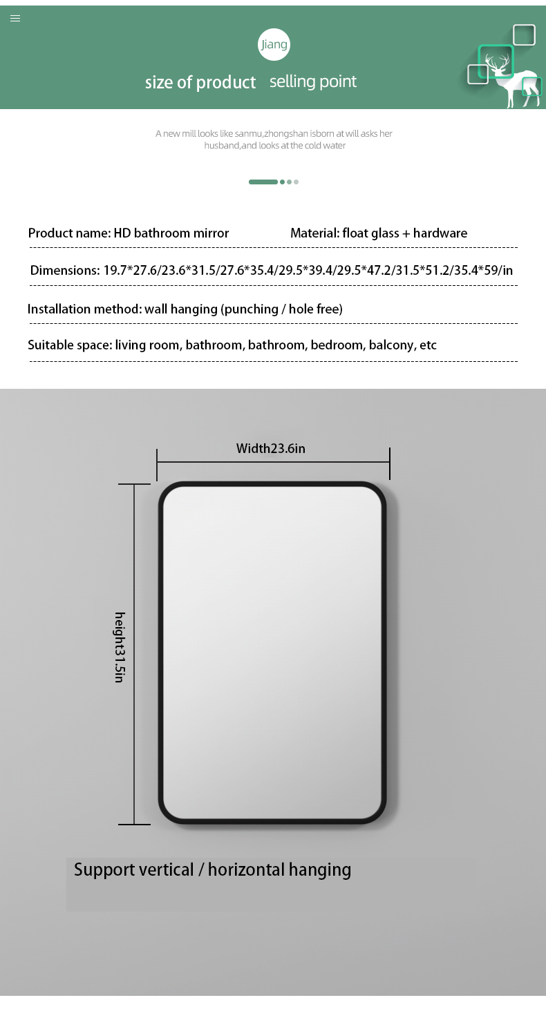Bathroom mirror bathroom mirror with frame simple explosion-proof wall hanging hotel toilet toilet makeup mirror customization