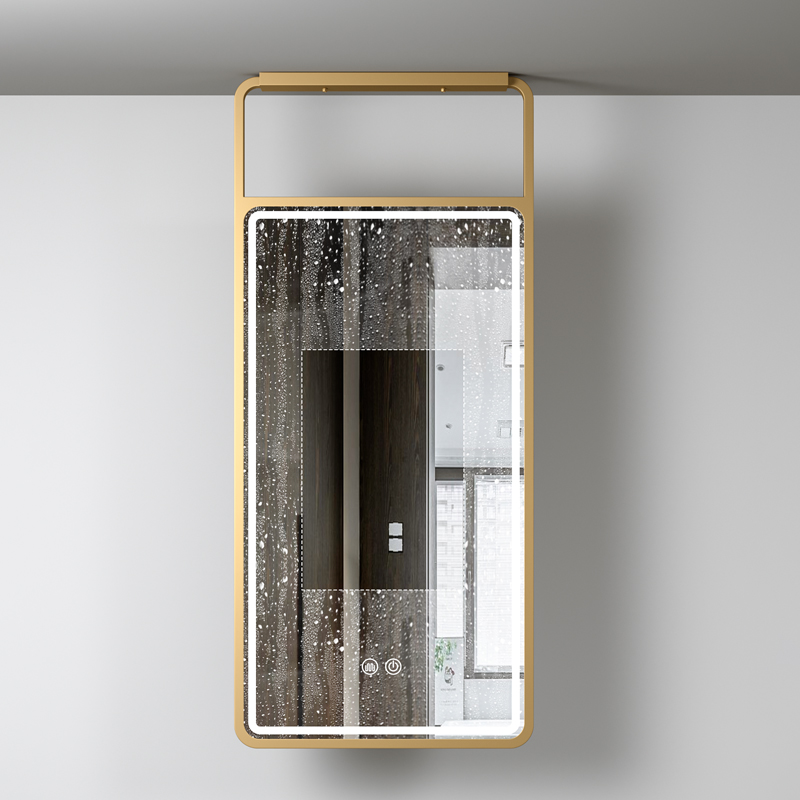 Bathroom luminous hanging mirror suspended stainless steel frame ceiling hollow with light hotel shopping mall bathroom mirror customization