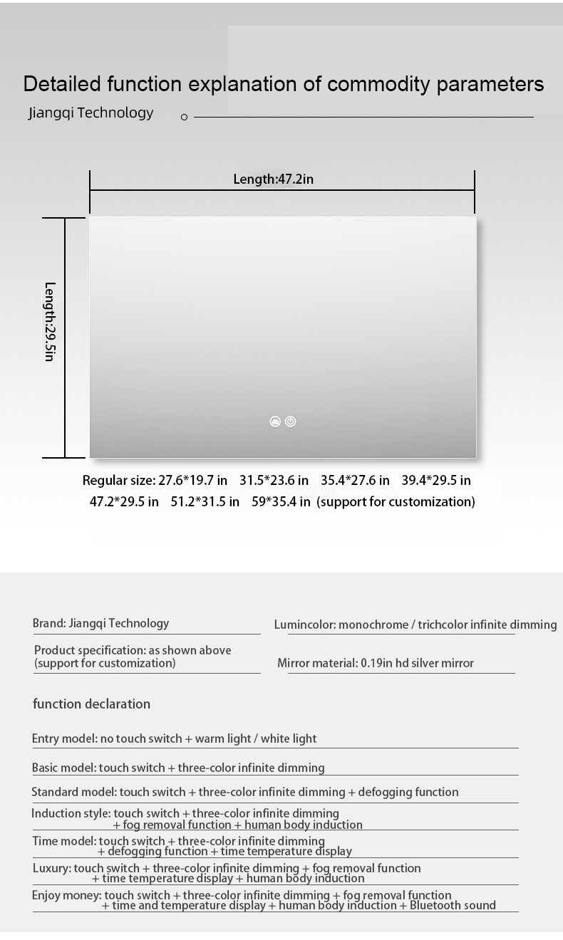 Mirror Material: 5MM high-definition silver mirror