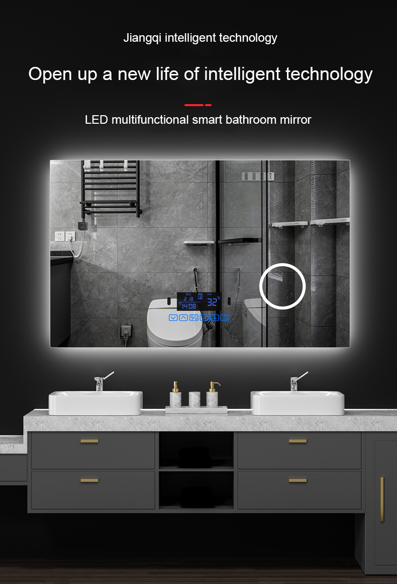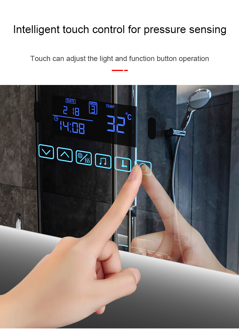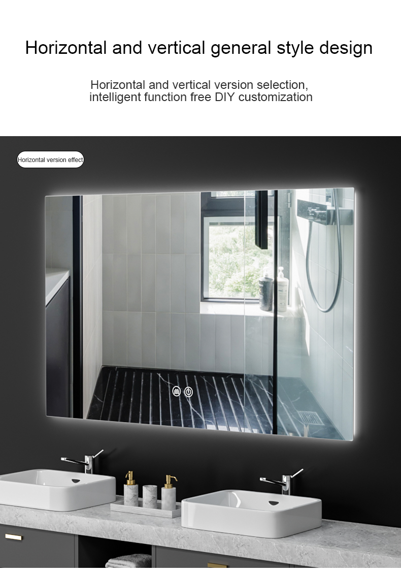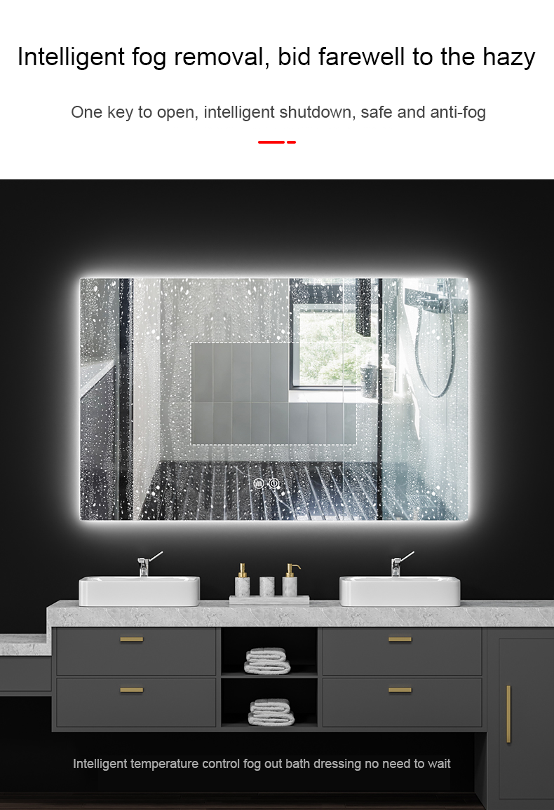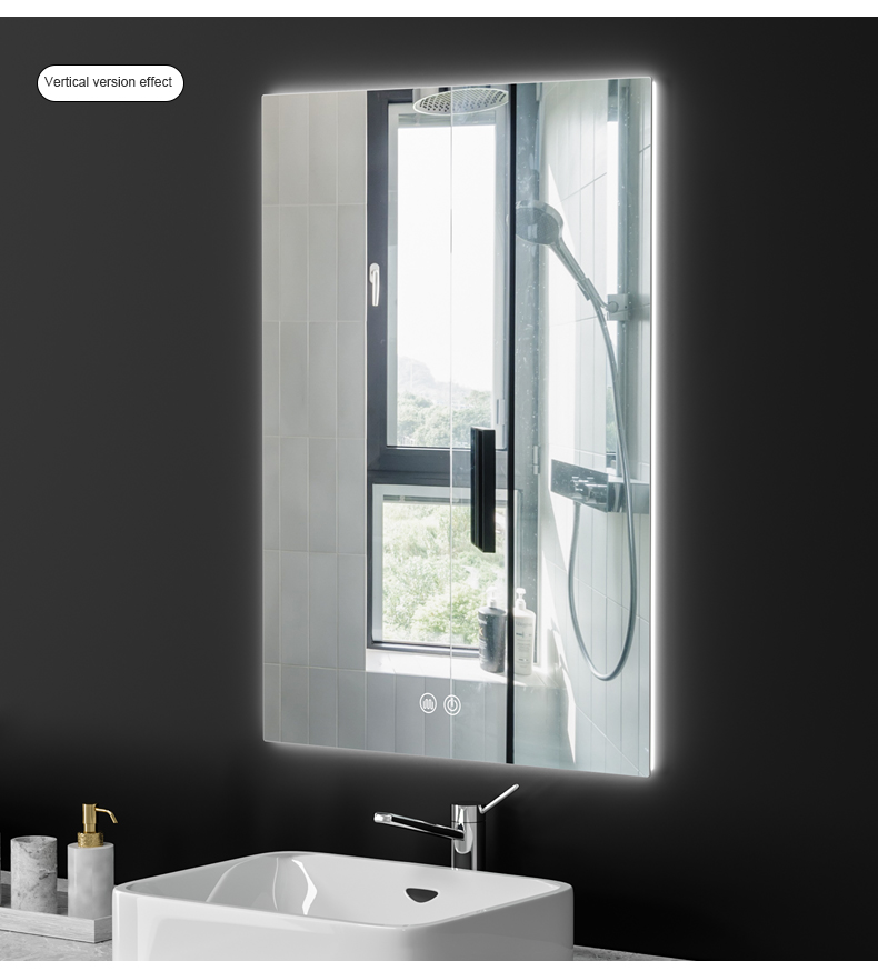 Customized illuminated bathroom mirror washroom bathroom mirror with light square wall-mounted anti-fog mirror smart mirror touch screen