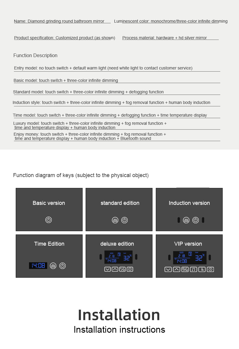 The Mirror Size: D600*H40MM, W600*H800*T31MM