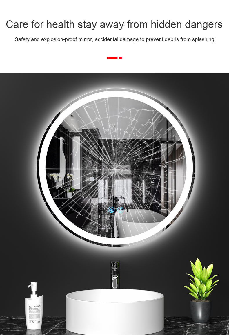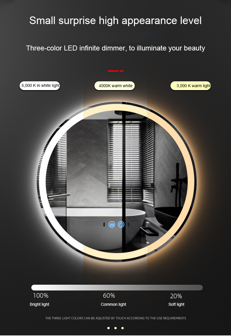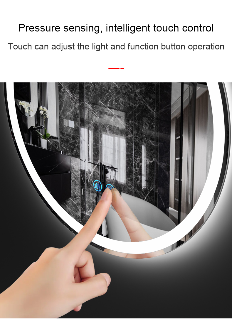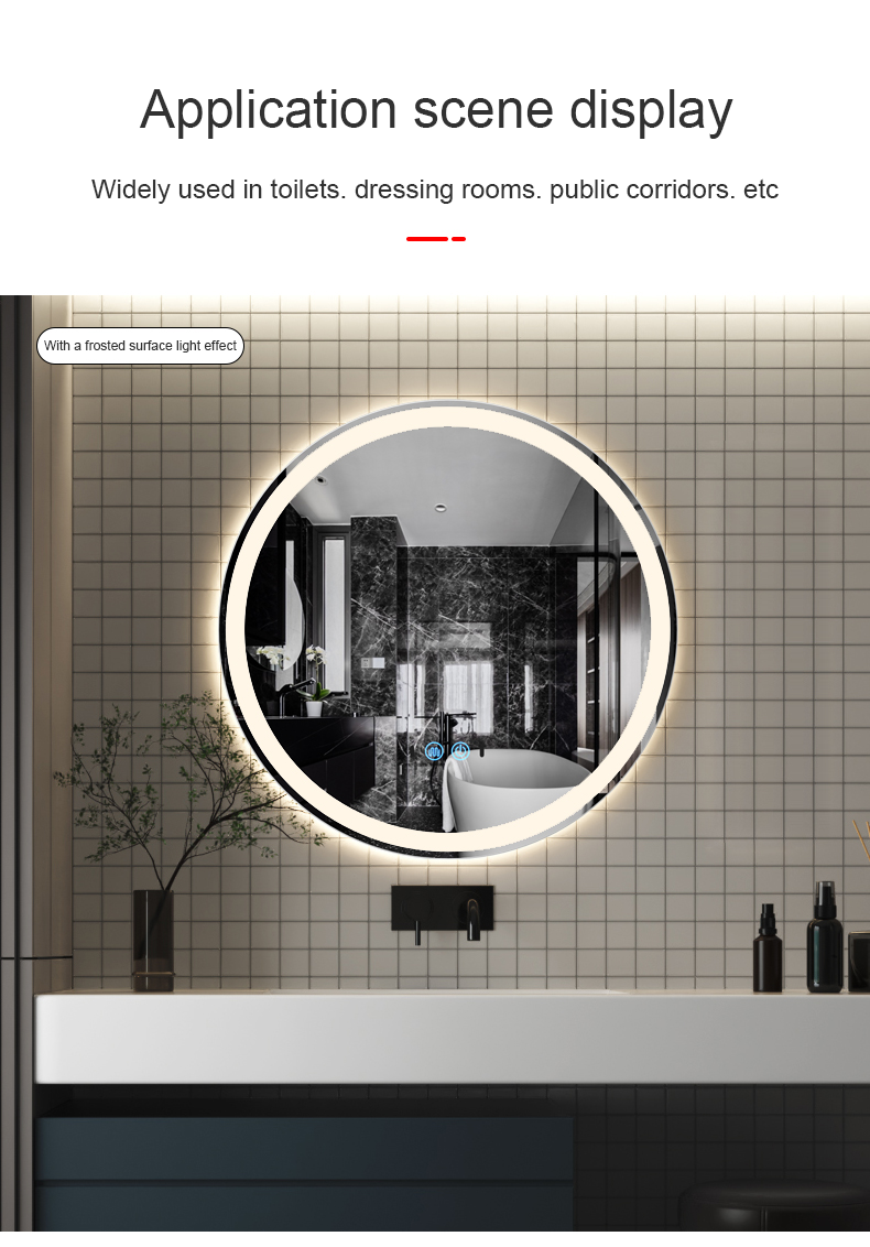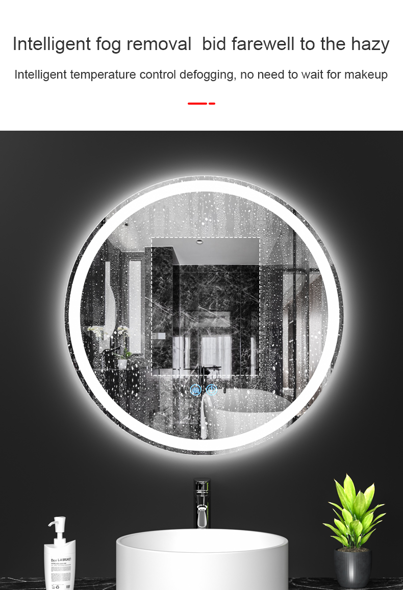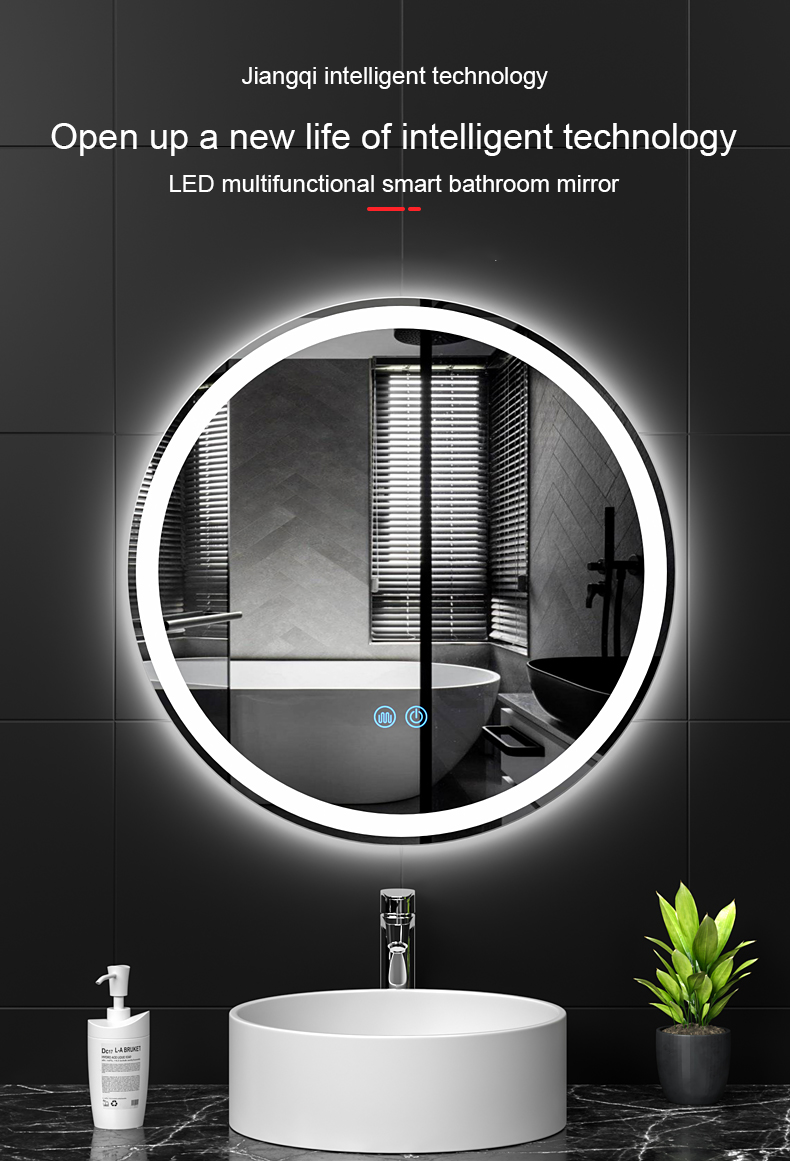Touch key round mirror wall-mounted smart bathroom mirror bathroom with light LED induction anti-fog luminous wall-mounted mirror
