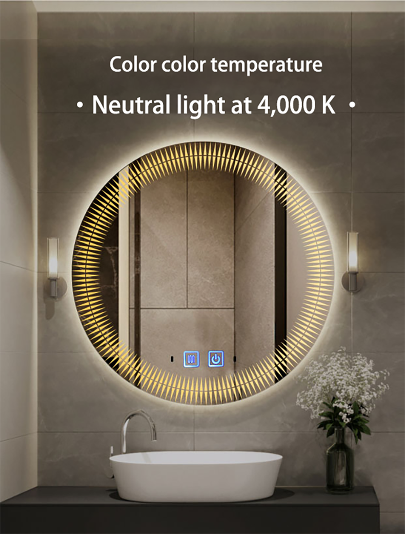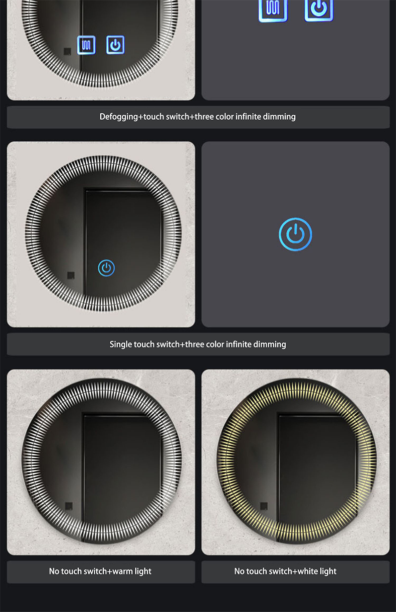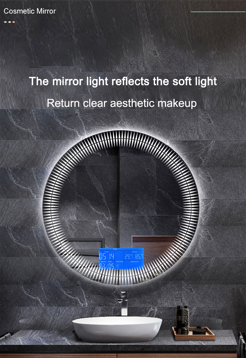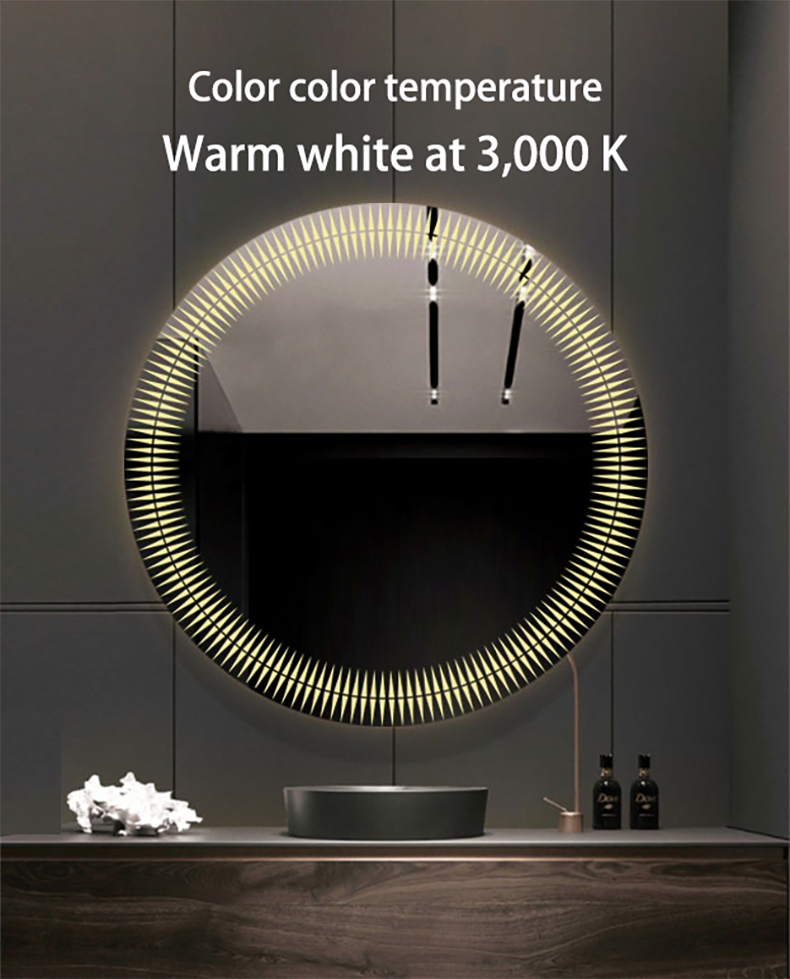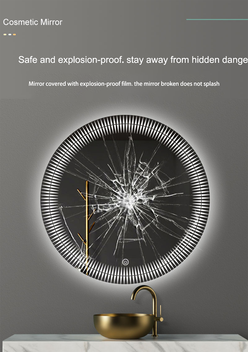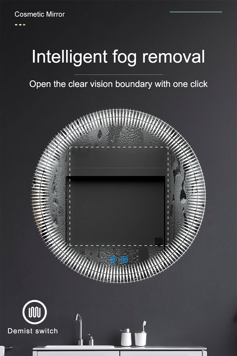European style washroom wall-mounted LED light mirror round illuminated toilet mirror smart anti-fog bathroom mirror