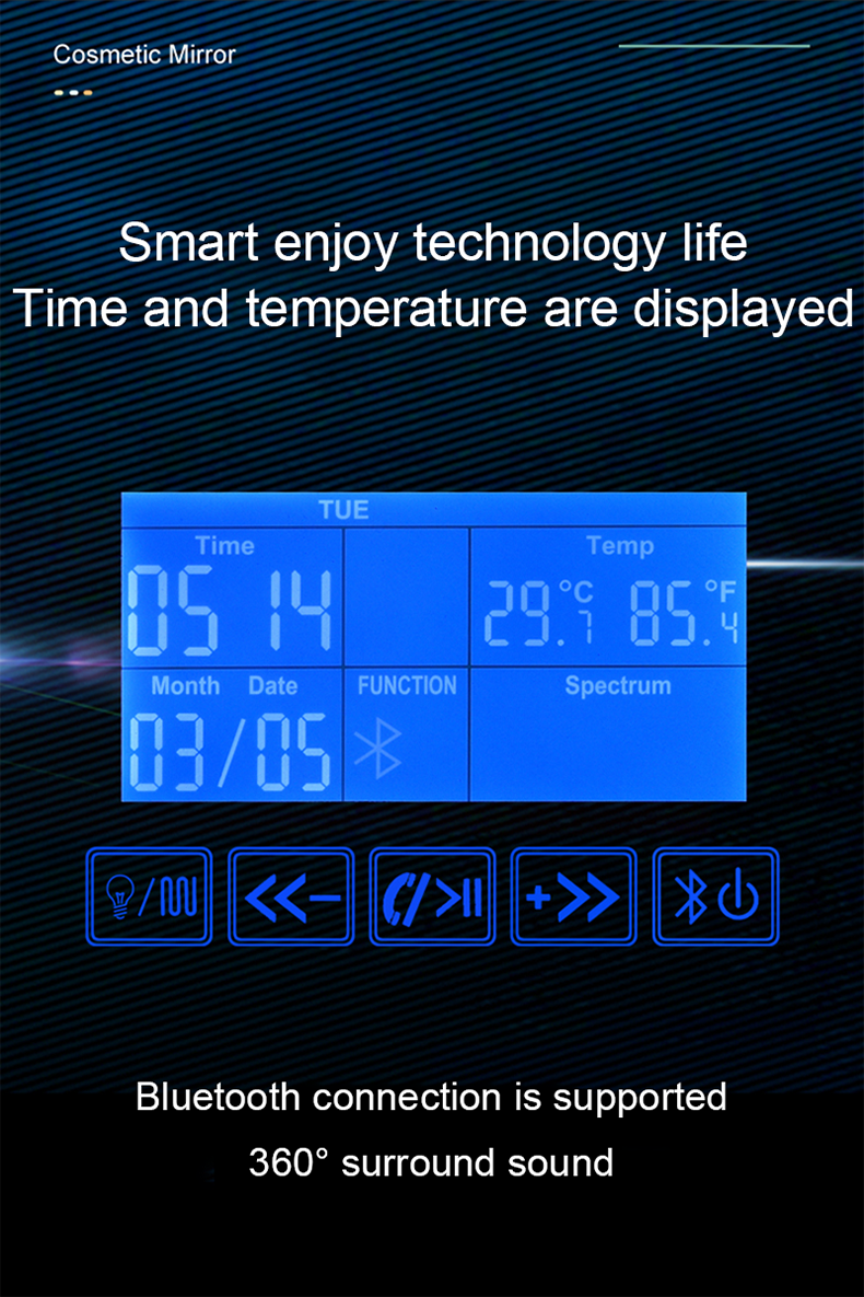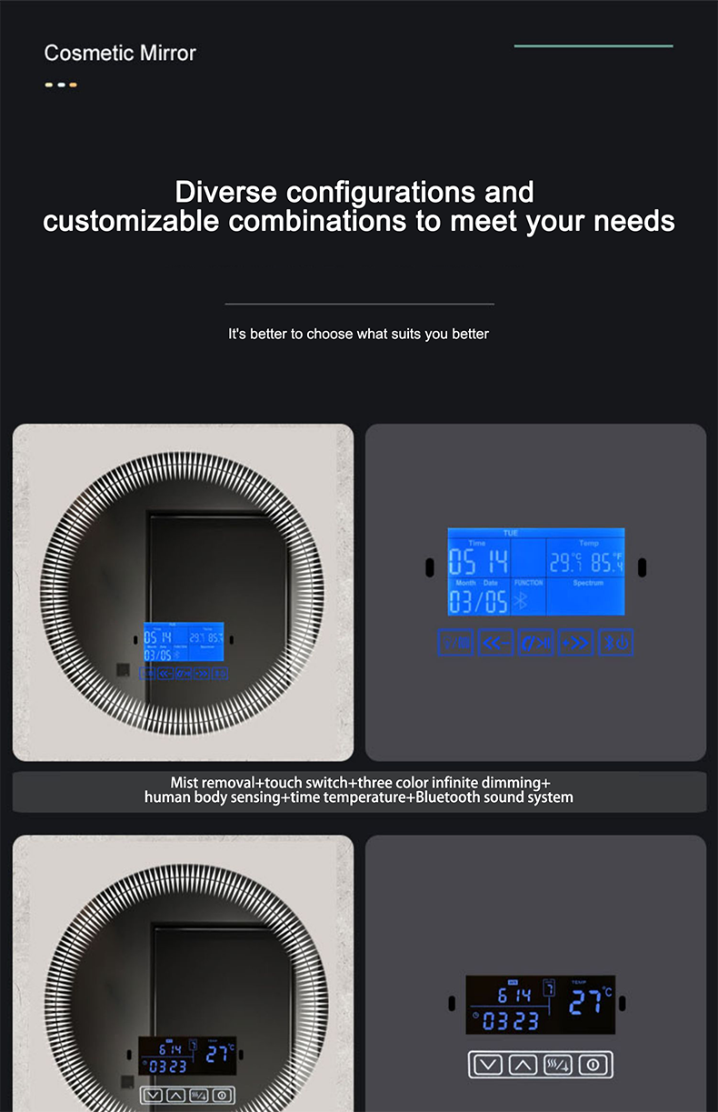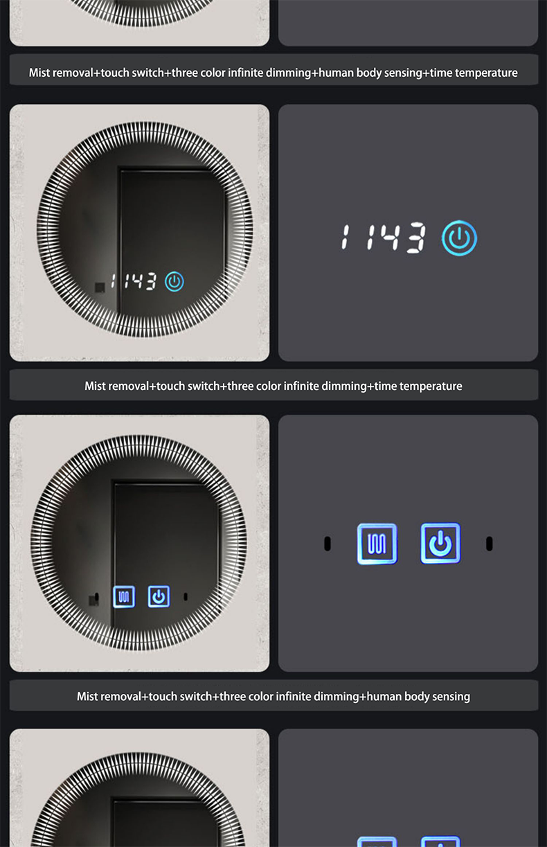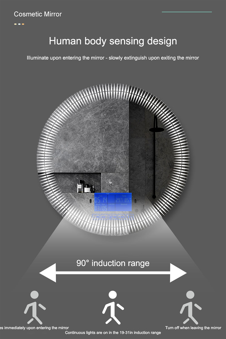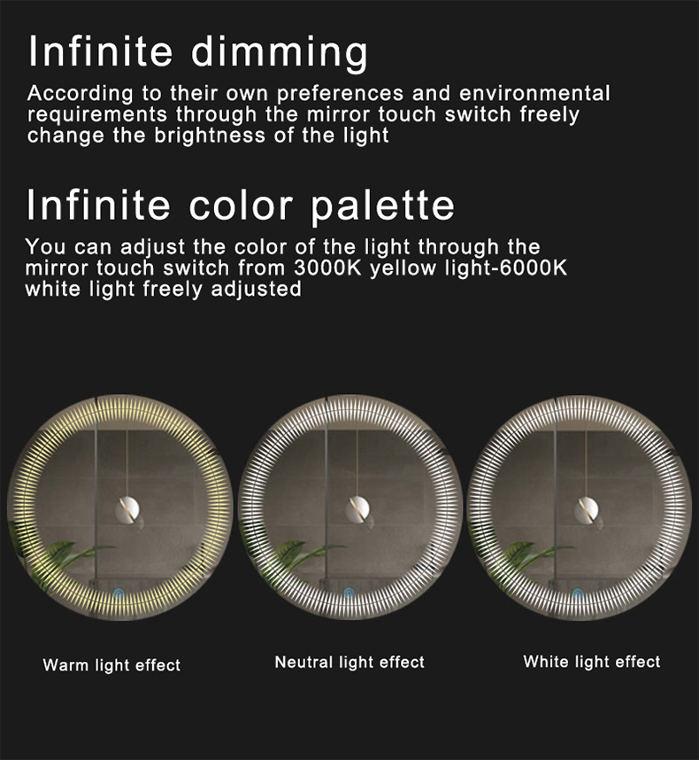 European style washroom wall-mounted LED light mirror round illuminated toilet mirror smart anti-fog bathroom mirror