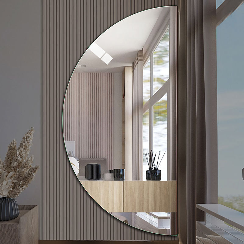 Semi-circular full-length mirror ins style wall-mounted bedroom dressing mirror wall-mounted makeup mirror self-adhesive special-shaped fitting mirror