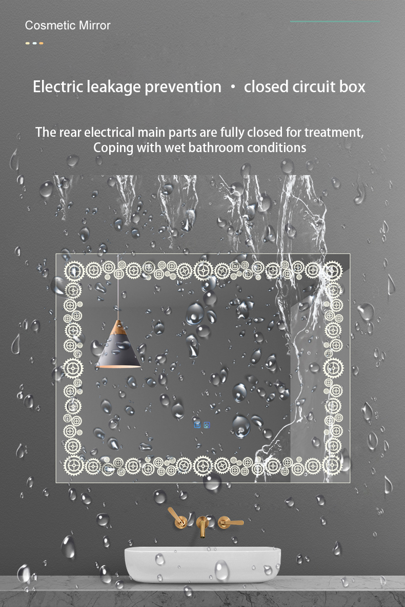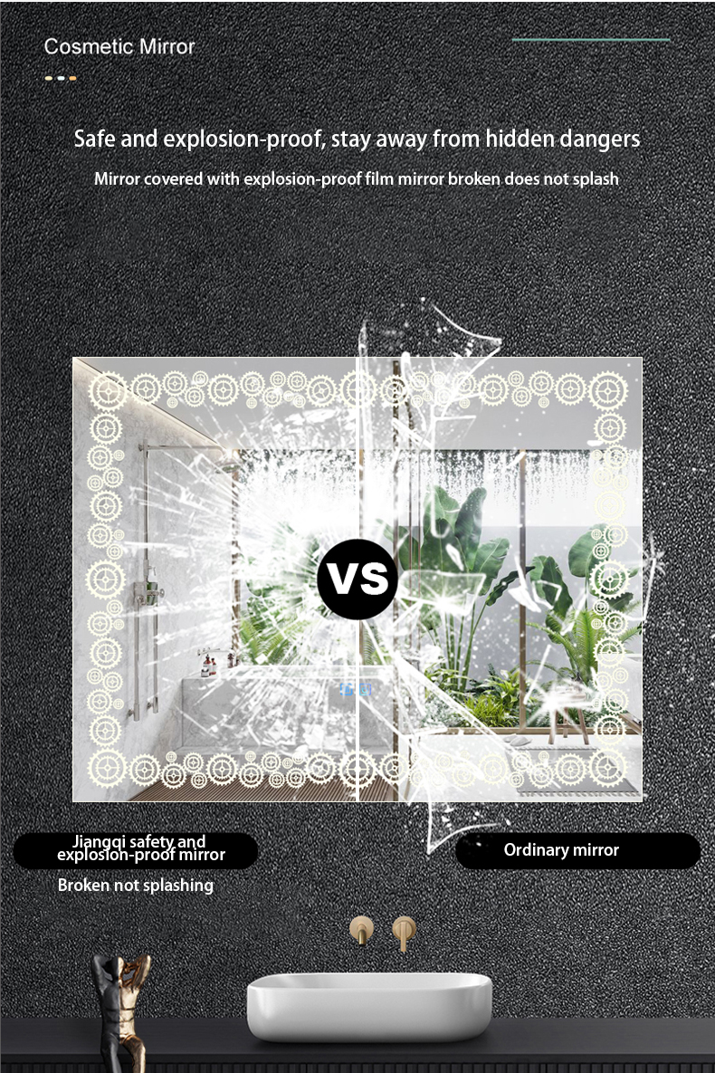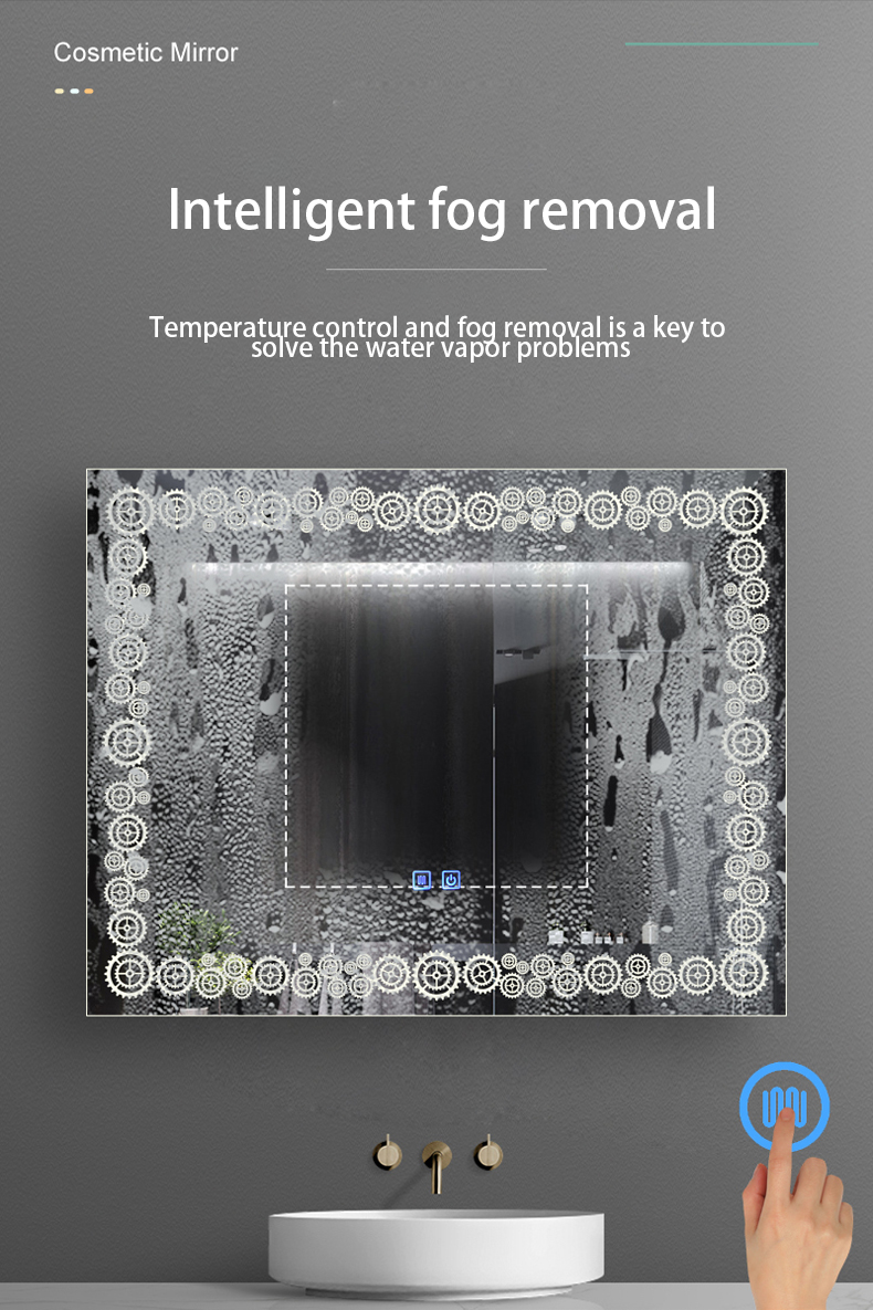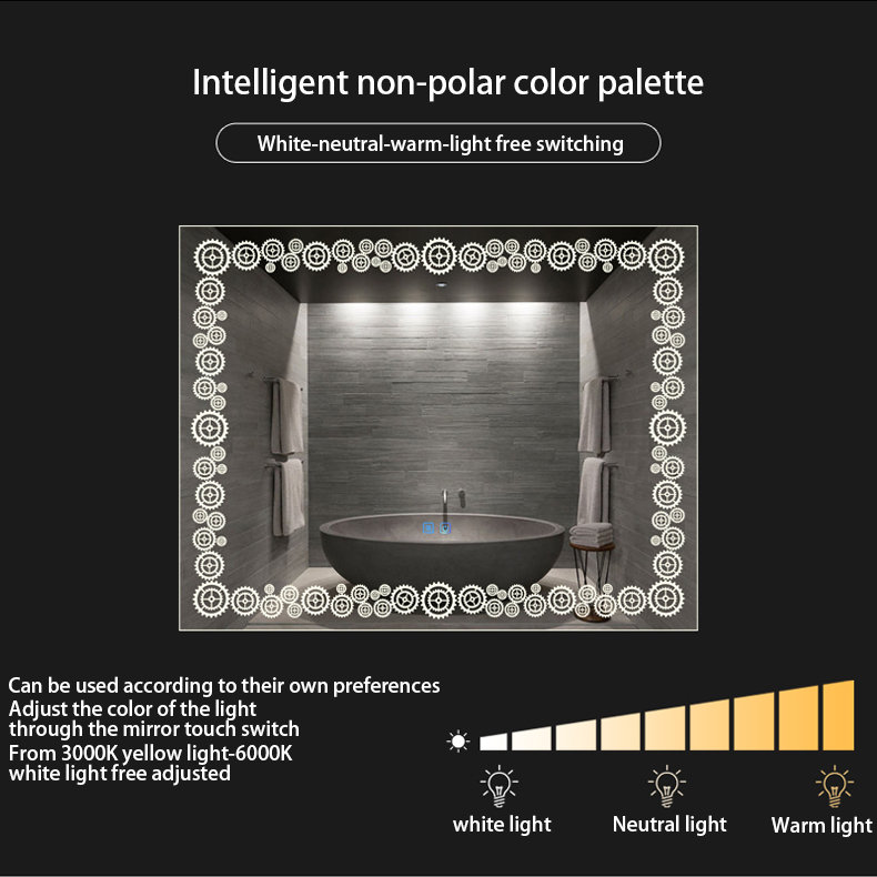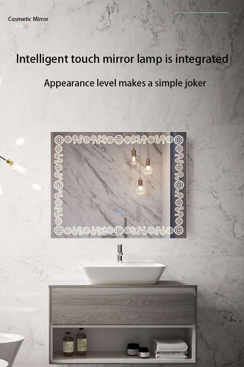 Square fashionable light luxury bathroom mirror anti-fog smart mirror bathroom hotel luminous mirror washbasin wall hanging light mirror