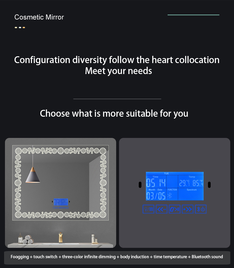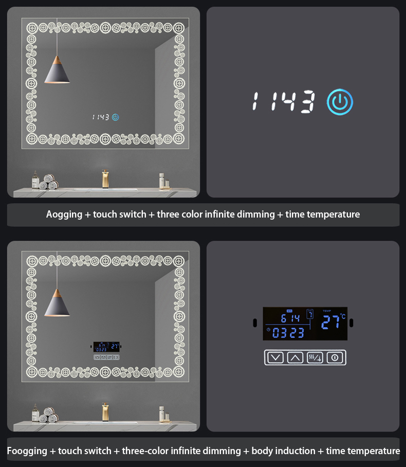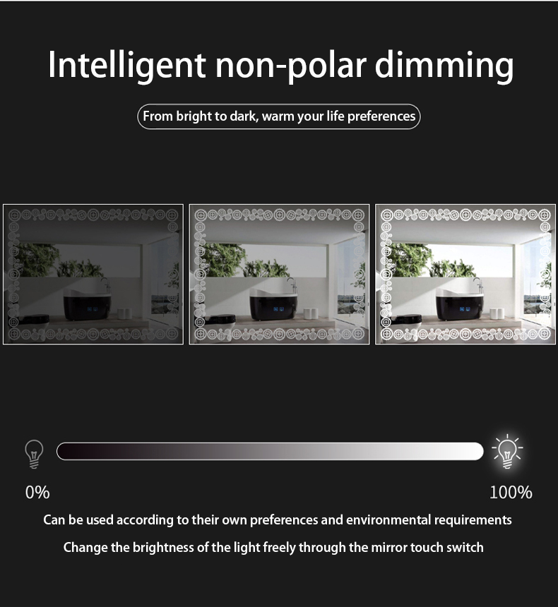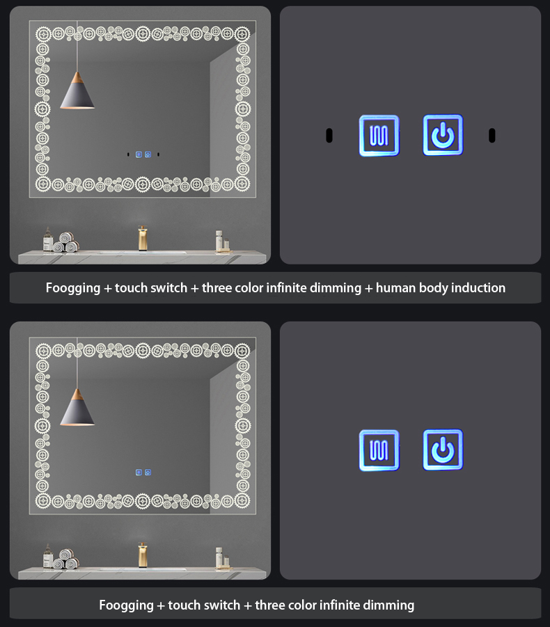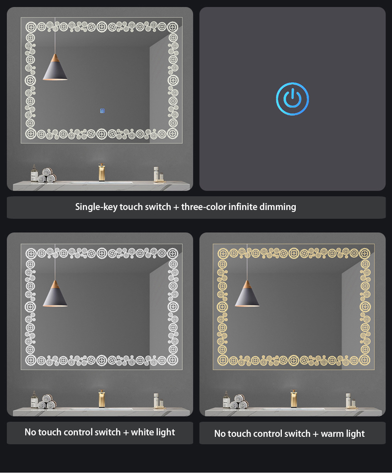 Square fashionable light luxury bathroom mirror anti-fog smart mirror bathroom hotel luminous mirror washbasin wall hanging light mirror