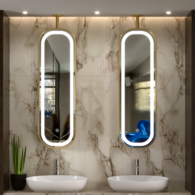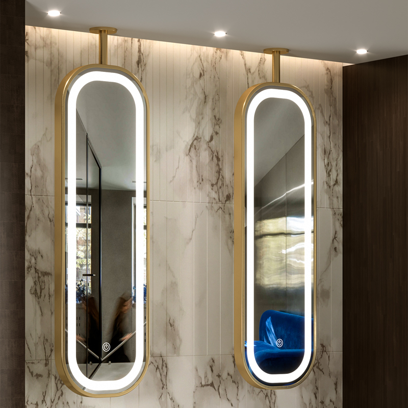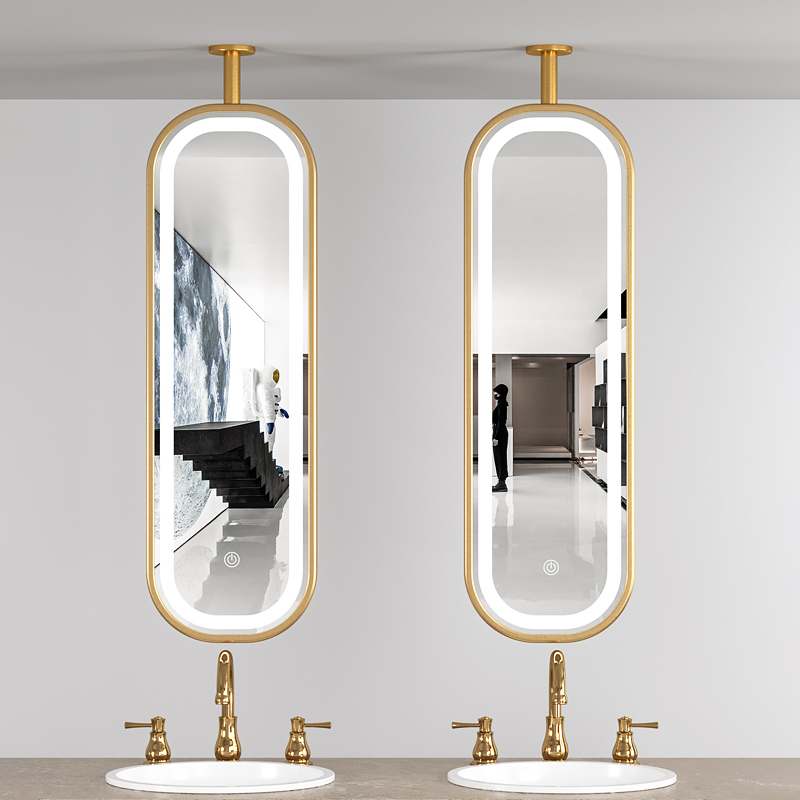 Suspended rod oval mirror hotel bathroom mirror custom restroom bathroom mirror ceiling hanging mirror suspended luminous mirror