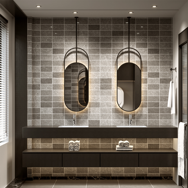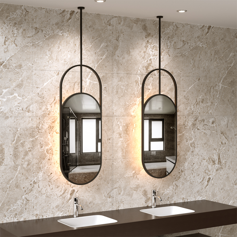 Suspended rod oval mirror hotel bathroom mirror custom restroom bathroom mirror ceiling hanging mirror suspended luminous mirror